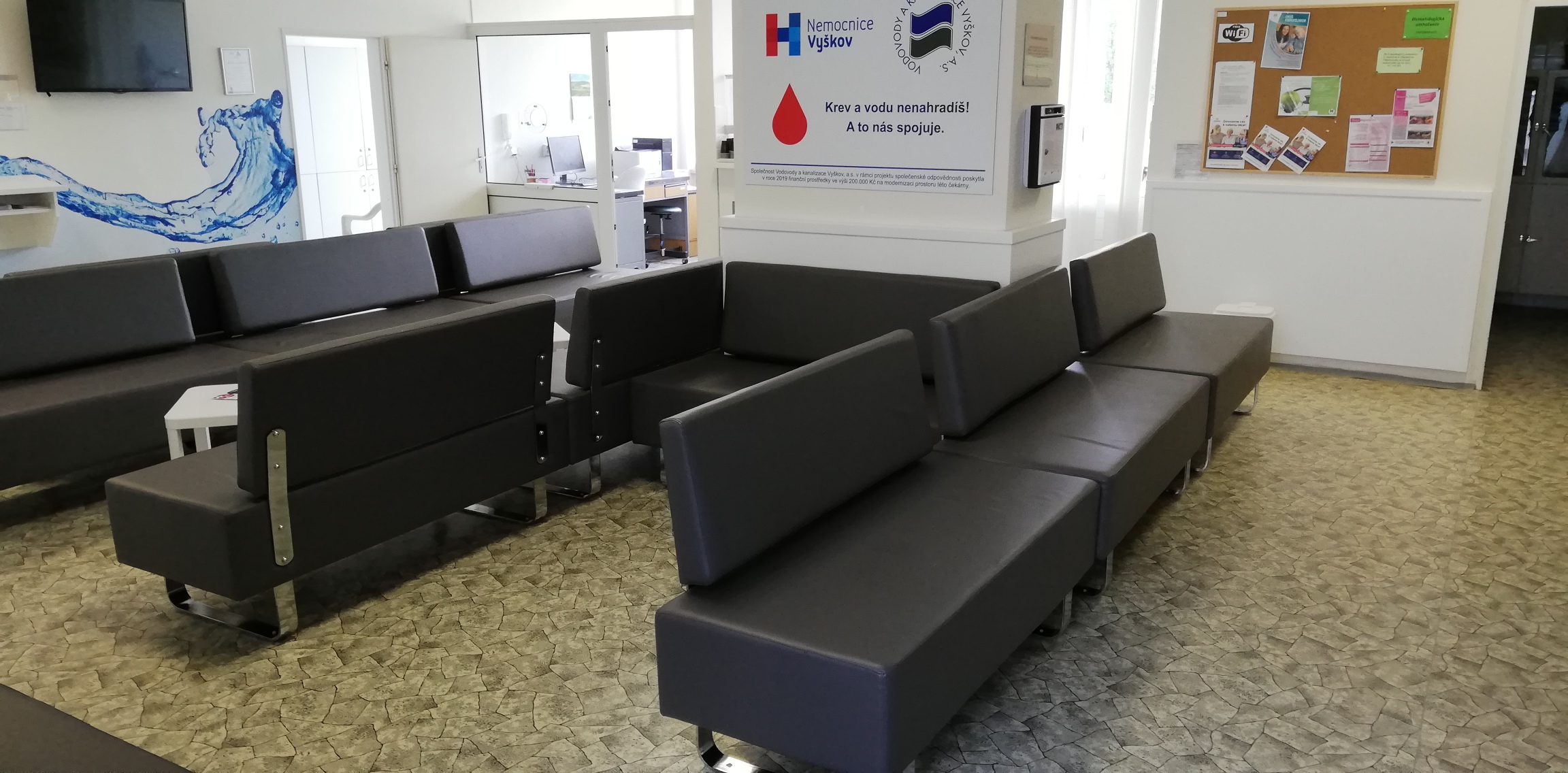 V roce 2018 jsme zahájili vzájemnou spolupráci a vybavili odběrový sál dárců krve novou televizí. V roce 2019 společnost poskytla finanční dar 200.000 Kč, ze kterého byla pod heslem „Krev a vodu nenahradíš! A to nás spojuje.“ zahájena realizace projektu rekonstrukce čekárny pro dárce krve. Nevyhovující lavice byly nahrazeny novými pohovkami s navýšením počtu sedících o 50 %, byly pořízeny nové stolky, výdejní občerstvovací stůl pro dárce, otočné věšáky, tapetování dřevěného obložení stěn a osazení grafických tapet. V září 2020 jsme nemocnici pomohli s pořízením nového mobiliáře – konkrétně setu venkovní lavičky a odpadkového koše – do venkovních prostor areálu nemocnice. Pokračování realizace projektu na HTO bylo, i s ohledem na vývoj pandemie COVID-19 odloženo s tím, že se jako potřebnější v říjnu 2020 ukázalo poskytnutí finančních prostředků ve výši 173.000 Kč na nákup dýchacího přístroje AIRVO 2 Nasal High Flow včetně příslušenství a spotřebního materiálu, a to pro oddělení ARO vyškovské nemocnice. Pevně věříme, že tento dýchací přístroj pomohl v době kulminace pandemie zachránit nejeden lidský život.